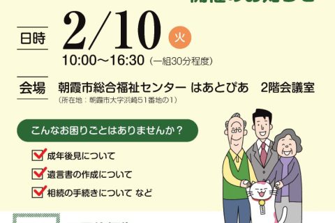 現在、年2回朝霞市社会福祉協議会と共催にて行政書士による無料相談会を実施しております。
