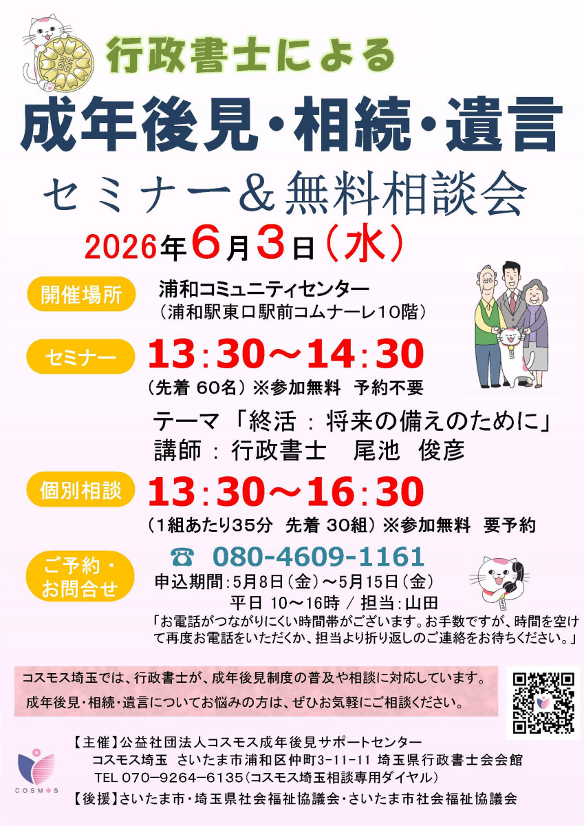 令和8年(2026年)6月3日(水) セミナーと相談会 浦和区